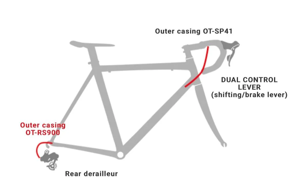 Unlike standard derailleur housing such as OT-SP41, the OT-RS900 is engineered with greater flexibility to accommodate the sharper entry angle used on Shimano’s 2nd generation 11-speed road Shadow derailleurs. This design helps reduce cable drag and improve shifting precision, particularly on high-end road drivetrains.