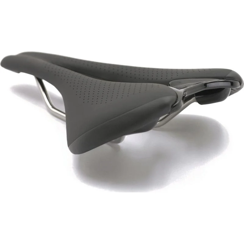 The Ajna Elite saddle features a women-specific shape designed to optimize weight distribution and relieve pressure during rides. The lightweight titanium rails provide durability and vibration damping, while the medium width ensures a perfect fit for most riders.